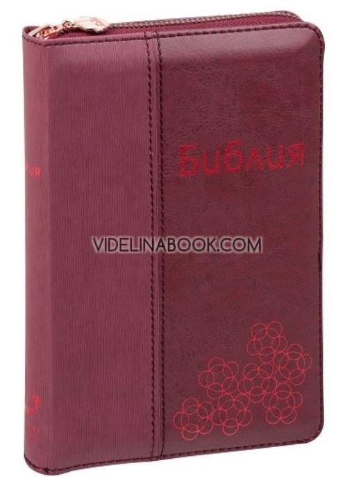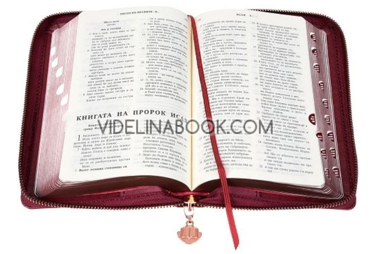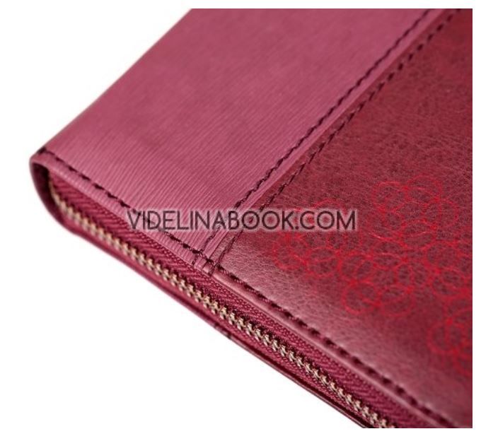 Стилно издание с корици в червен цвят с графичен елемент, комбиниращо два различни вида материал за корицата и снабдено с брандиран цип за допълнителна защита от похабяване. Библията е снабдена с палцови индекси, таблица за мерните единици и теглилки, тематичен справочник и свободни страници за бележки.