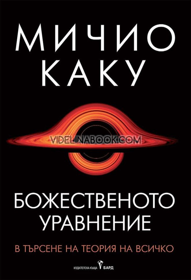 Каку също така представя и разгорещените спорове около тази обединяваща теория, в които Нобелови лауреати заемат противоположни позиции. Това е приковаваща вниманието, завладяваща книга. Залогът е разбирането ни за вселената. Написана с характерния за Каку ентусиазъм и яснота, историята на това епично пътешествие е всъщност историята на Божественото уравнение.