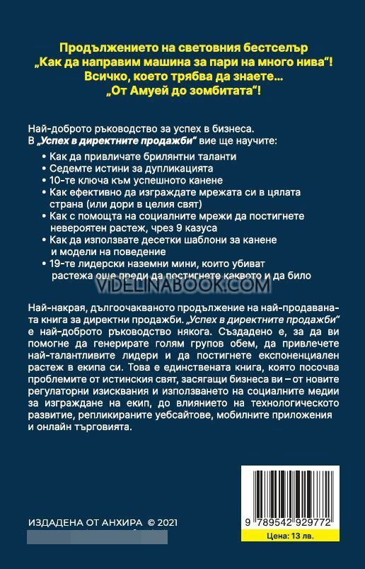 Най-накрая дългоочакваното продължение на най-продаваната книга за директни продажби. „Успех в директните продажби“ е най-доброто ръководство някога. Създадено е, за да ви помогне да генерирате голям групов обем, да привлечете най-талантливите лидери и да постигнете експоненциален растеж в екипа си.