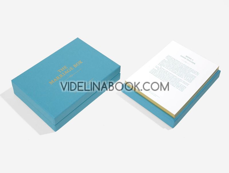 Този комплект на „The School of Life“ предоставя грижливо подбрани карти, които изследват как да се поддържа и задълбочи бракът, не само в първите дни, но през дългите години след сватбата. В „Кутията на брака“ са включени двадесет красиви карти, всеки с мисъл, цитат или предложение, което насърчава двойките да се справят с предизвикателствата, които неминуемо се появяват в съвместния живот. Комплектът служи и като пътеводител за дълготрайни взаимоотношения — как да изградите съвместен живот, като развивате умението за компромиси, търпение, общуване и взаимно разбиране. Той показва, че любовта не е само романтика, но изисква умения, усилия и осъзнатост.