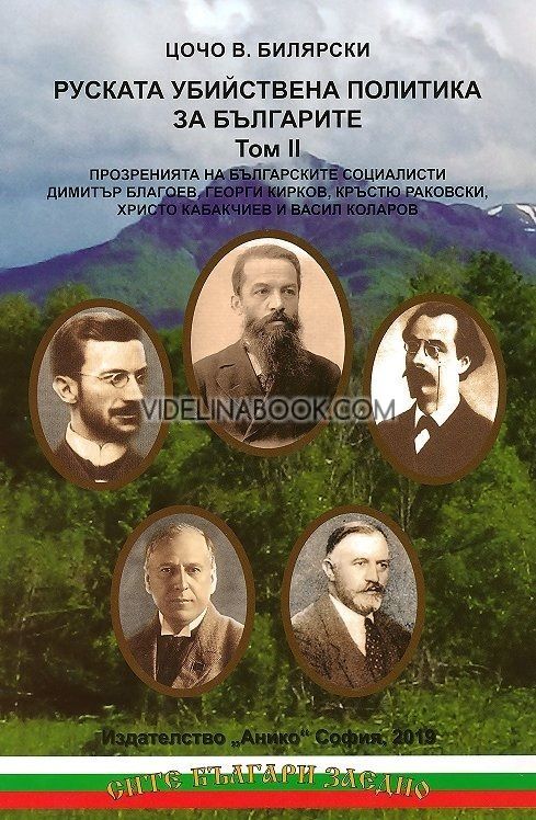 Сега нашите читатели ще имат възможност да се запознаят с втория пореден, но не и последен том от "Руската убийствена политика за българите". В него са включени книги, брошури, речи и статии на най-видните български социалисти от тесносоциалистическия им период. Основната тема в тях е позицията и отношението на българските тесни социалисти към руската агресивна политика срещу народа, държавата и земите ни. Тук читателите ще се срещнат със словото на най-видните български социалисти - Димитър Благоев, Георги Кирков, Христо Кабакчиев, Васил Коларов, Кръстьо Раковски и др.