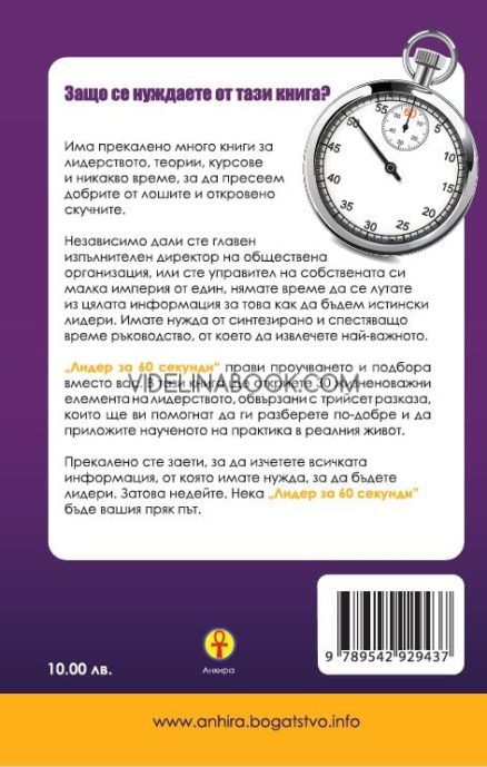 Прекалено сте заети, за да изчетете всичката информация, от която имате нужда, за да бъдете лидери. Затова недейте. Нека "Лидер за 60 секунди: Всичко, което трябва да знаете за лидерството, за 60 секунди" бъде вашия пряк път.