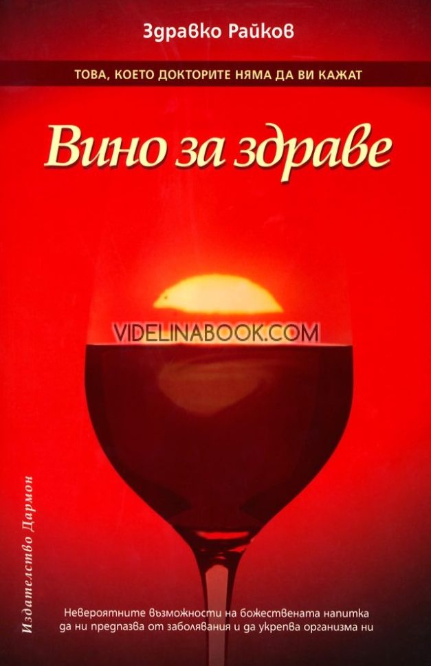 Вино за здраве е съчетание от научни наблюдения, личен опит и практически съвети за всеки, който иска да поддържа жизненост, привлекателност и дълголетие. Професор Здравко Райков, социолог и експерт по здравословен начин на живот, описва как редовната консумация на истинско вино от грозде може да засили имунната система, да предотврати заболявания, да подобри психическото и физическото състояние и да подпомогне естествените процеси на детоксикация.