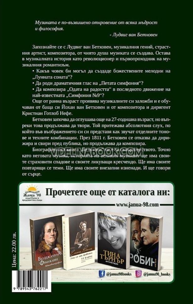 "Бетховен: Биография" на Мартин Гек е вдъхновяващо изследване на живота, личността и гения на един от най-великите композитори в историята. Авторът не просто проследява факти и дати, а прониква в психологическите, емоционалните и творческите дълбини на Бетховен – човек, чиято борба със съдбата се превръща в симфония на човешкия дух.