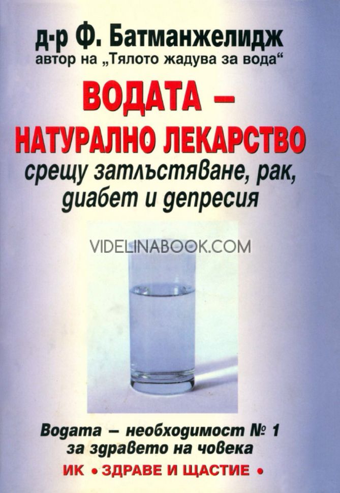 Водата – натурално лекарство срещу затлъстяване, рак, диабет и депресия от д-р Ф. Батманжелидж е революционна книга, която представя водата като основен лечебен фактор за множество хронични заболявания. Авторът, базирайки се на над 20 години клинични наблюдения и научни изследвания, доказва, че обезводняването на организма е в основата на редица здравословни проблеми, включително затлъстяване, диабет, депресия и онкологични заболявания.