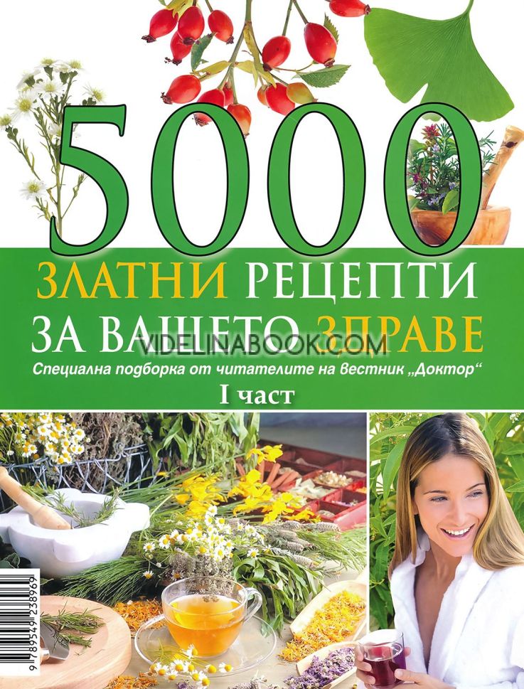 Книгата „5000 златни рецепти за вашето здраве – част 1“ е първата от поредицата, издадена от вестник „Доктор“, и представлява ценен сборник с изпитани рецепти, предоставени от читателите на изданието. Тя обединява хилядите предложения, изпратени от хора, които са намерили облекчение и изцеление чрез нетрадиционни методи.