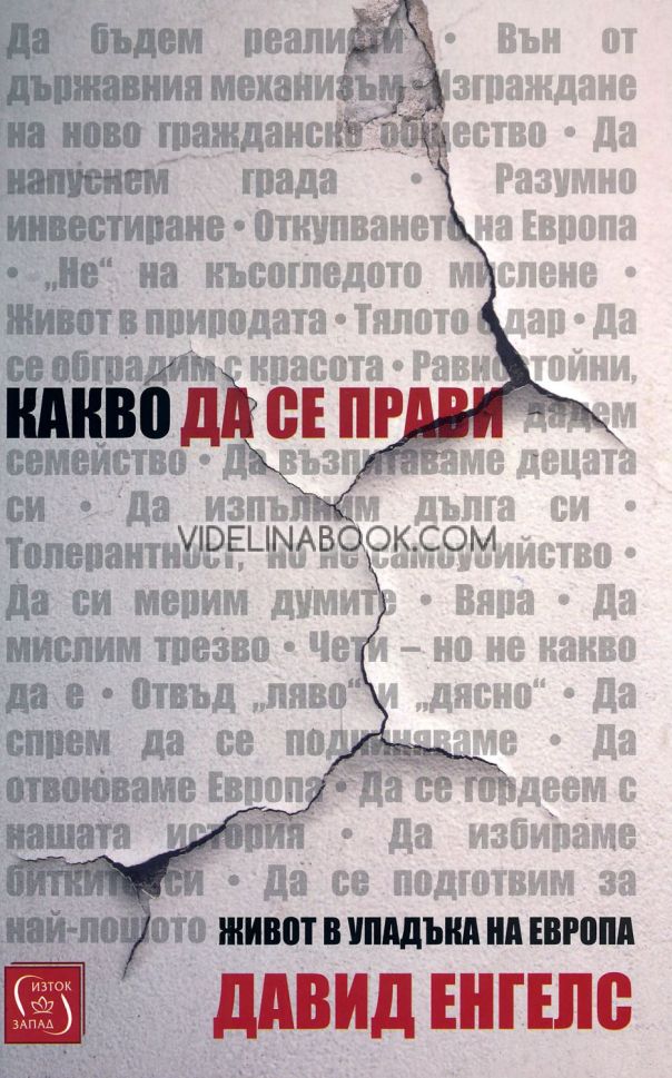 Книгата „Какво да се прави: Живот в упадъка на Европа“ разглежда упадъка на западната цивилизация и предизвикателствата пред съвременното общество. Тя предлага реалистичен анализ на политически коректното мислене, социалните и цивилизационни проблеми и дава практични съвети за това как да се изградят устойчиви решения за бъдещето, като се съхрани наследството за потомците.