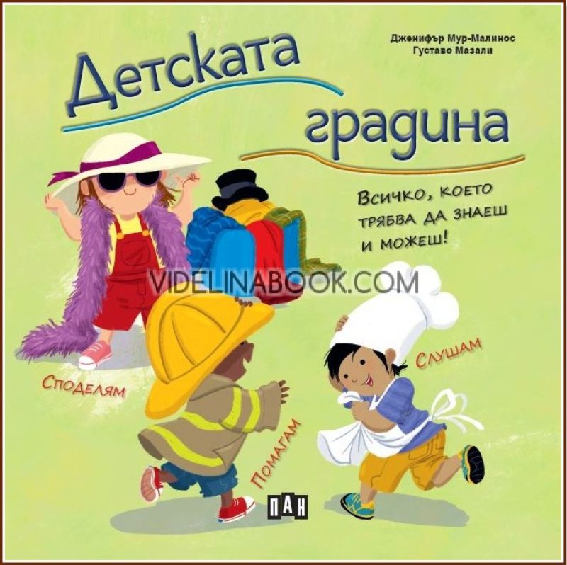 Детската градина: Всичко, което трябва да знаеш и можеш, написана от Дженифър Мур-Малинос, е пъстра, мъдра и истински полезна книга, която подкрепя малките деца в първите им стъпки към света извън дома. Тя представя по достъпен и приятелски начин основните социални, емоционални и практически умения, които едно дете трябва да развие, за да се чувства уверено и спокойно в средата на детската градина.