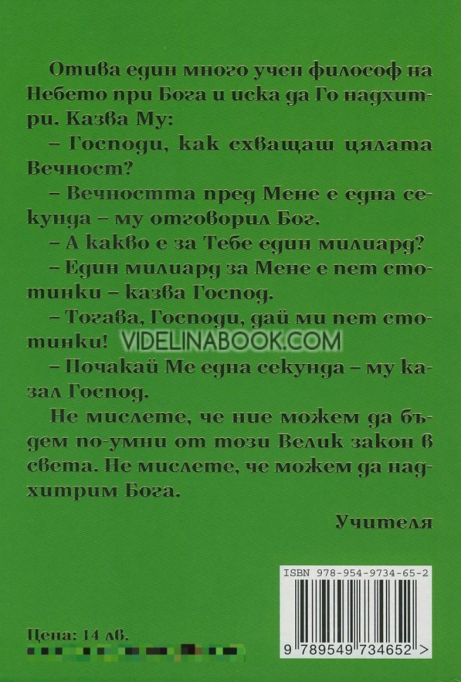 Хумористични извадки с поука из словото на Учителя Петър Дънов. Една книга, с която ще се смеете от сърце, но в същото време можете да извлечете и много поуки и големи истини за Живота. Всяка от случките и хумореските, са придружени с коментари и обяснения на Учителя.