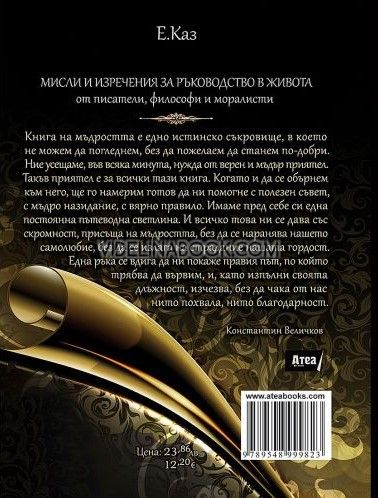 „Книга на мъдростта: Мисли и изречения за ръководство в живота: Над 3000 мъдрости от цял свят“ е ценен източник на мъдрости, които могат да бъдат ръководство в ежедневието. Събрани са над 3000 мисли, които насърчават самопознание, развитие и духовно израстване. Читателят ще открие поуки, които обогатяват живота и дават насока при трудни решения. Книгата е като вярен приятел, който предлага съвети без да осъжда. Тя вдъхновява към осъзнат живот и вътрешна хармония.