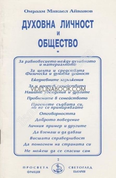 „Духовна личност и общество“ от Омраам Микаел Айванхов е кратко, но дълбоко въздействащо съчинение, което разглежда взаимовръзката между вътрешния живот на човека и хармонията в обществото. Авторът, известен езотеричен философ и духовен учител, поставя акцент върху това, че истинската промяна в света започва с трансформацията на отделната личност. Само когато човек развие висше съзнание, той може да бъде носител на светлина и ред в социалната тъкан.