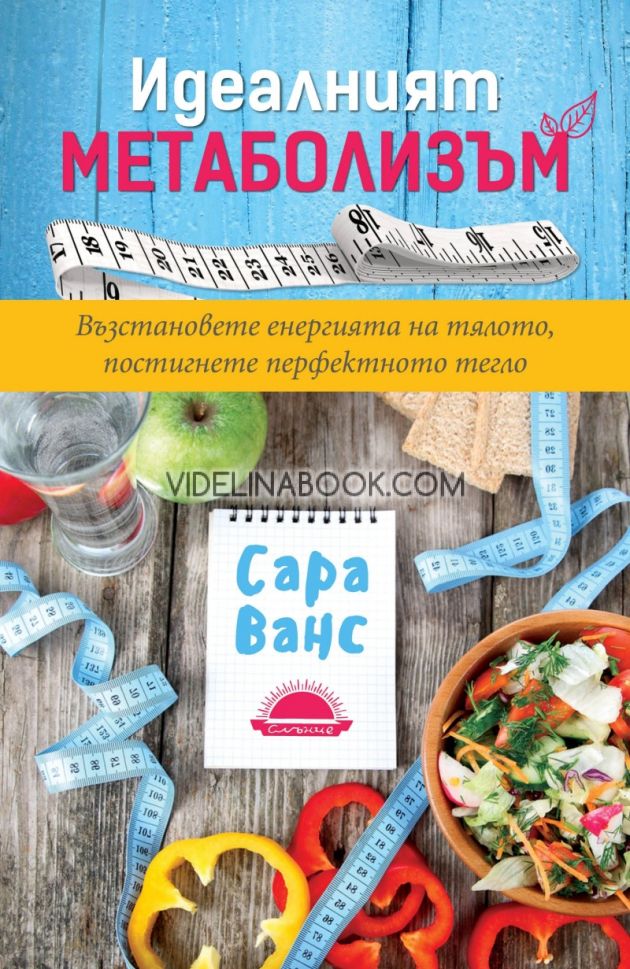 „Идеалният метаболизъм“ от Сара Ванс е книга, посветена на метаболизма, енергията на тялото и постигане на оптимално тегло. Сара Ванс е диетолог, автор на публикации за връзката между хранене и здраве, блогър и водещ на кулинарни курсове. Книгата й „Идеалният метаболизъм“ е написана от презумпцията, че всички диети и терапии дават само временни, а не трайни резултати, ако не се подобри метаболизмът.